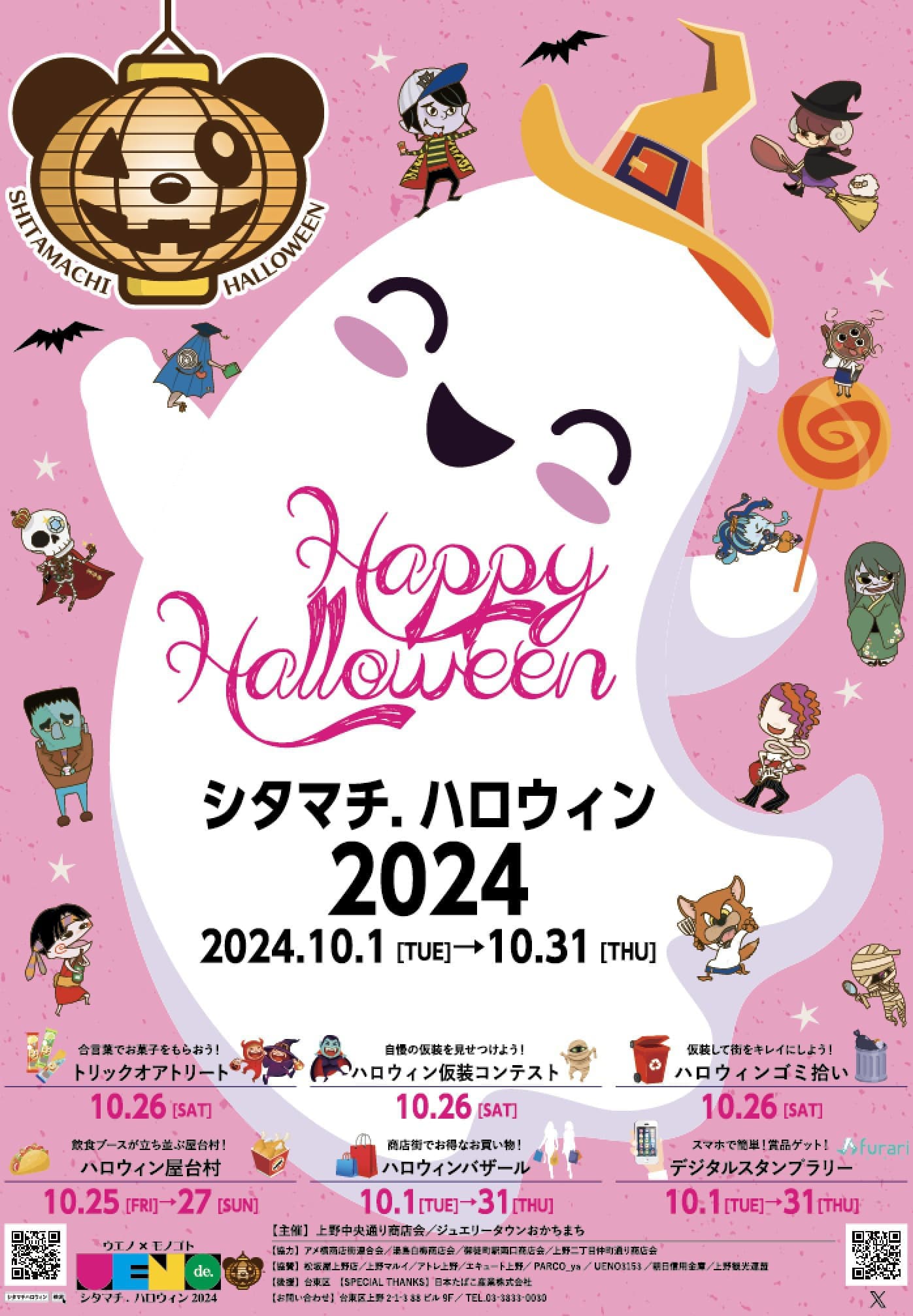 上野公園袴腰広場を舞台に開催される「シタマチ.ハロウィン」は、子どもから大人まで楽しめる下町ならではのにぎやかで温かいハロウィンイベントです。仮装しての参加はもちろん大歓迎!会場では、フォトスポットやステージパフォーマンス、こども縁日、地域のお店によるハロウィングルメや雑貨の販売など、楽しいコンテンツが盛りだくさん。地域と観光が交わる場として、地元の人々と訪れる人が一緒にハロウィンを楽しめるのが魅力です。また、安心・安全な環境の中で、親子で参加できる「トリック・オア・トリート」も実施。秋の上野に、カラフルでちょっぴり不思議な世界が広がります。歴史と文化が息づく“シタマチ”で、心躍るハロウィンの一日をぜひお過ごしください。